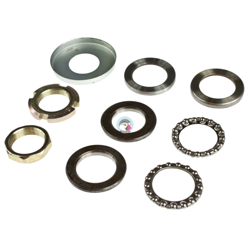 Zestaw łożyska główki ramy dolnego Piaggio Gilera 50cm3 / 125cm3 /180cm3 / 200cm3 / 250cm3, Italjet Velocifero 50cm3W skład zestawu wchodzi: łożysko dolne, miska i bieżnia dolnego łożyska, oraz osłona metalowa dolnego łożyska.
