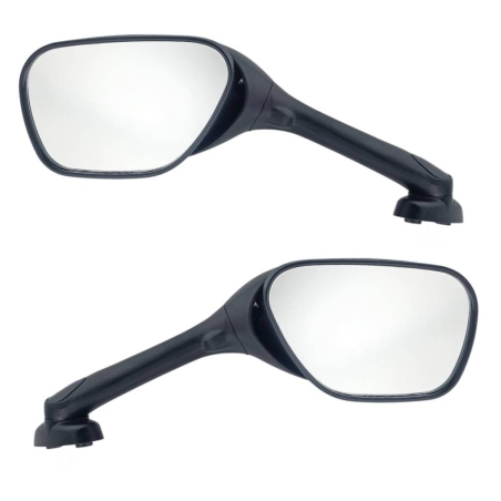 Komplet lusterek prostokądtnych, czarnych, do motocykli Kawasaki GPZ500, GPZ600, GPZ900, GPZ1000. Wykonane wedle oryginalnego wzoru, mocowanie na dwie śruby do owiewki na śrubę M6.