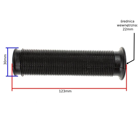 Manetka gumowa, prawa, do motocykli WSK125, WSK175, WFM125, OSA, SHL175.Wymiary: długość całkowita manetki: 120mm ; średnica wewnętrzna: 24mm