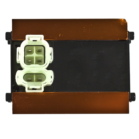 Standardowy moduł zapłonowy, do Quadów, pojazdów typu ATV. Dwie kostki, na 6 pinów. Jedna kostka kwadratowa 4 piny, druga prostokątna na 2 piny. Moduł na prąd stały DC.