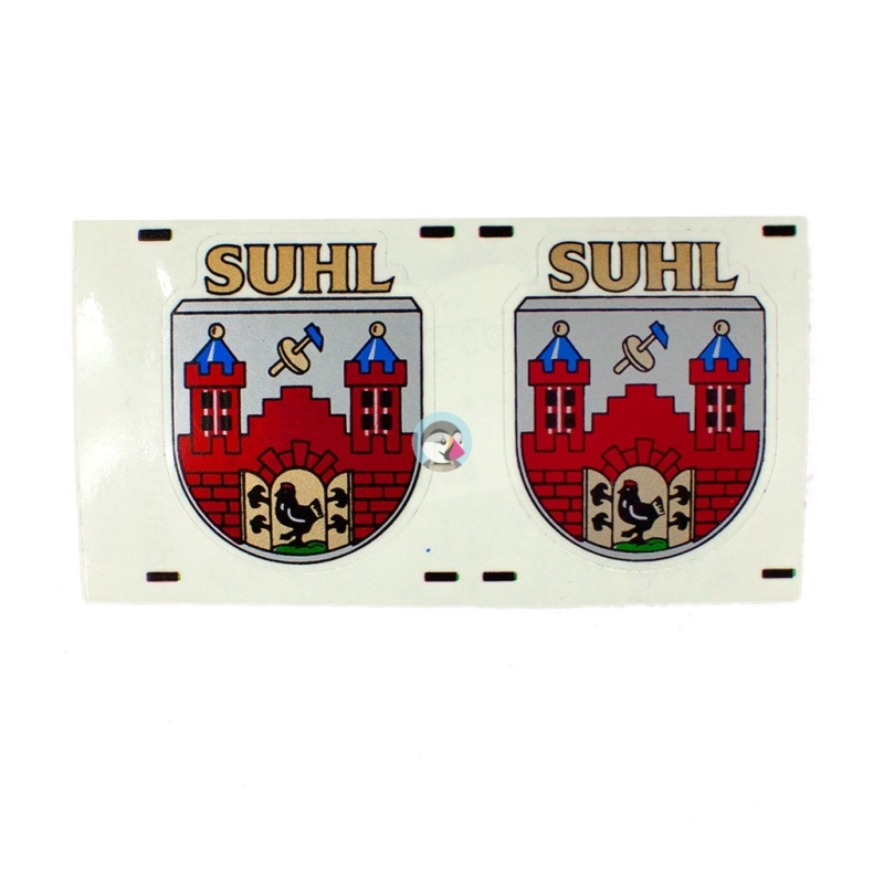 Naklejki na zbiornik paliwa - herb SHUL - do motorowerów Simson SR2. Zestaw zawiera dwie sztuki.