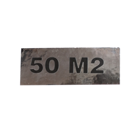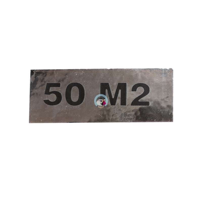 Naklejka na ramę, pod siedzenie, do motorynki. Napis "50 M2" czarny, w chromowanej obwódce. Cena za sztukę.