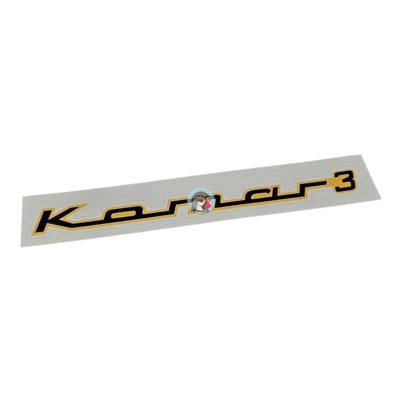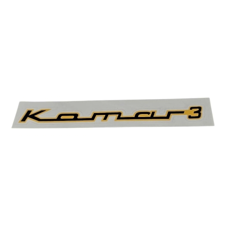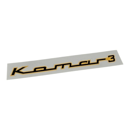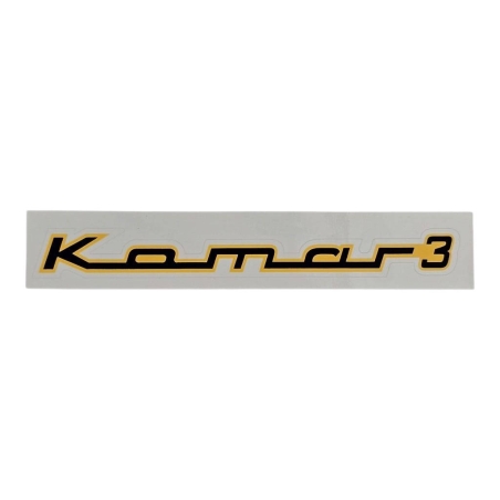 Naklejka zbiornika paliwa, do motorowerów Komar 3. Napis "Komar 3" czarny, w żółtej obwódce. Cena za sztukę.