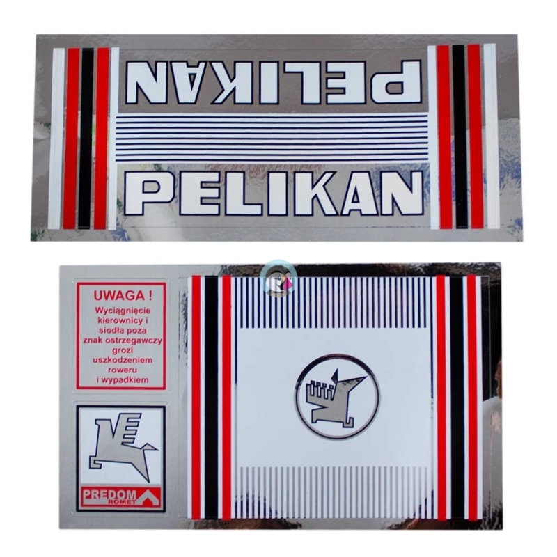 Zestaw naklejek, do motoroweru Romet Motorynka Pony 50-M1Najwyższa jakośc naklejek. W skład zestawu wchodzą dwie naklejki na zbiornik "Romet", jedna naklejka "Pegaz" na główkę ramy, oraz naklejki " Pony " na srebrnym tle i dwie naklejki 50-M-1