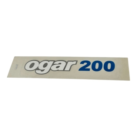 Naklejka pokrywy bocznej, do motorowerów Romet Ogar200. Napis "ogar" biały, w srebrnej obwódce, napis "200" niebieski. Cena za sztukę.