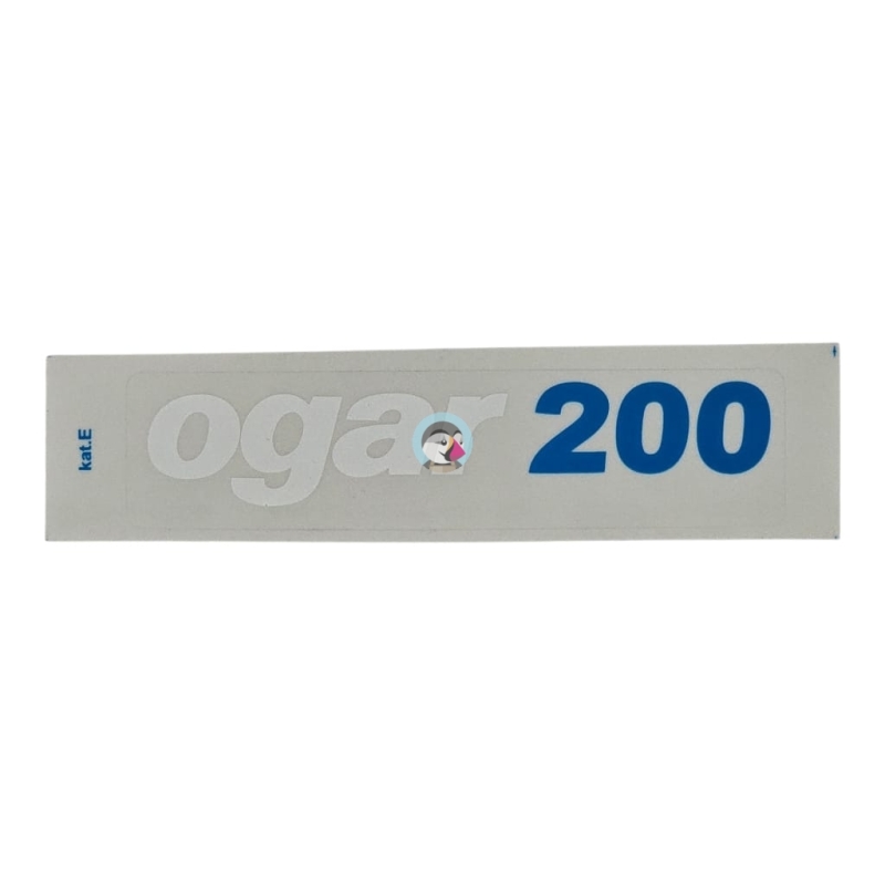 Naklejka pokrywy bocznej, do motorowerów Romet Ogar200. Napis "ogar" biały, napis "200" niebieski. Cena za sztukę.