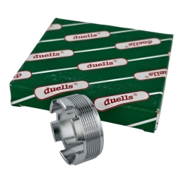 Nakrętka łącząca kolanko wydechowe z cylindrem, posiadające duże żebra, do motocykli Jawa 250 353 Kyvacka, Jawa 250 350 Perak, Jawa 350 354, 360. Nakrętka ocynkowana. Produkt wysokiej jakości Duells.