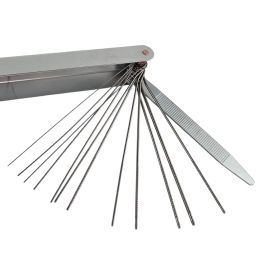Profesjonalny szczelinomierz renomowanej marki Yato, do mierzenia szczeliny między dwoma płaszycznami, np. przerywacze zapłonu lub pierścienie tłokowe. Zakres 0,02 - 1mm, 17 listków.