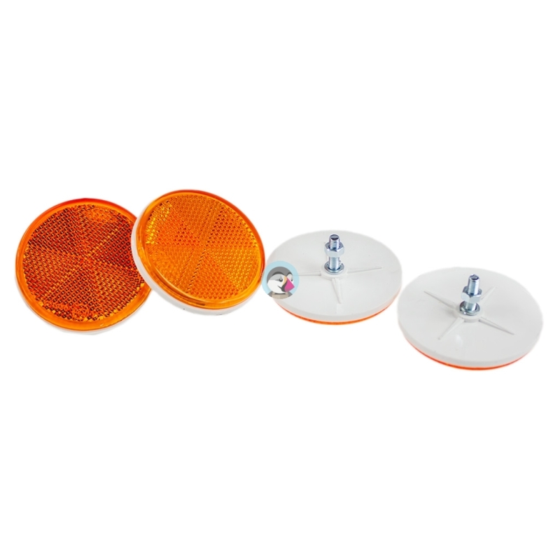 Zestaw bocznych odblasków, w kolorze pomarańczowym, w białej ramce, do motoxykli WSK125, WSK175. Odblaski z homolgacją E20.
