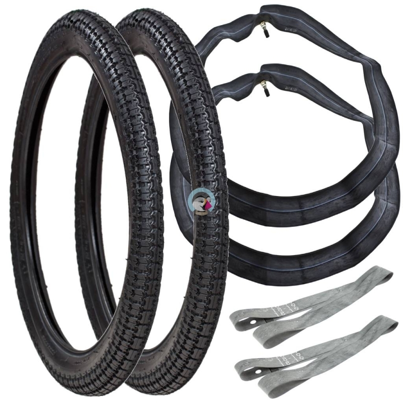 Komplet dwóch opon 2,25-19, dwóch dętek 2,25-19, i dwóch fartuchów ( osłon na szprychy ) 19 cali o szerokości 30mm.Wysokiej jakości produkt dedykowany do motorowerow Romet Komar, 50-T-1. Bieżnik zbliżony do oryginalnego wzoru.