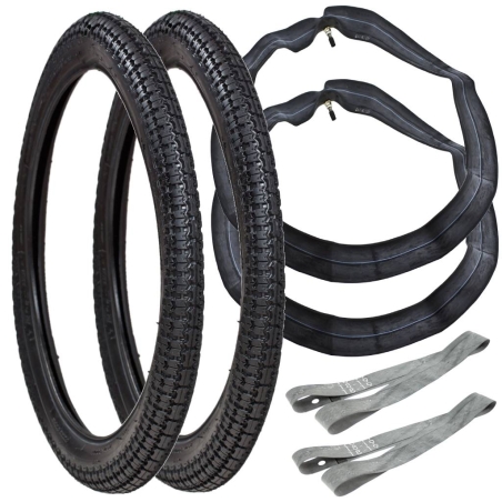Komplet dwóch opon 2,25-16, dwóch dętek 2,25-16, i dwóch fartuchów ( osłon na szprychy ) 16 cali o szerokości 30mm.Wysokiej jakości produkt dedykowany do motorowerow Romet Kadet. Bieżnik zbliżony do oryginalnego wzoru.