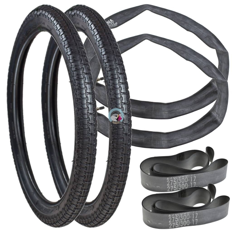 Komplet dwóch opon 2,25-17, dwóch dętek 2,25-17, i dwóch fartuchów ( osłon na szprychy ) 17 cali o szerokości 30mm.