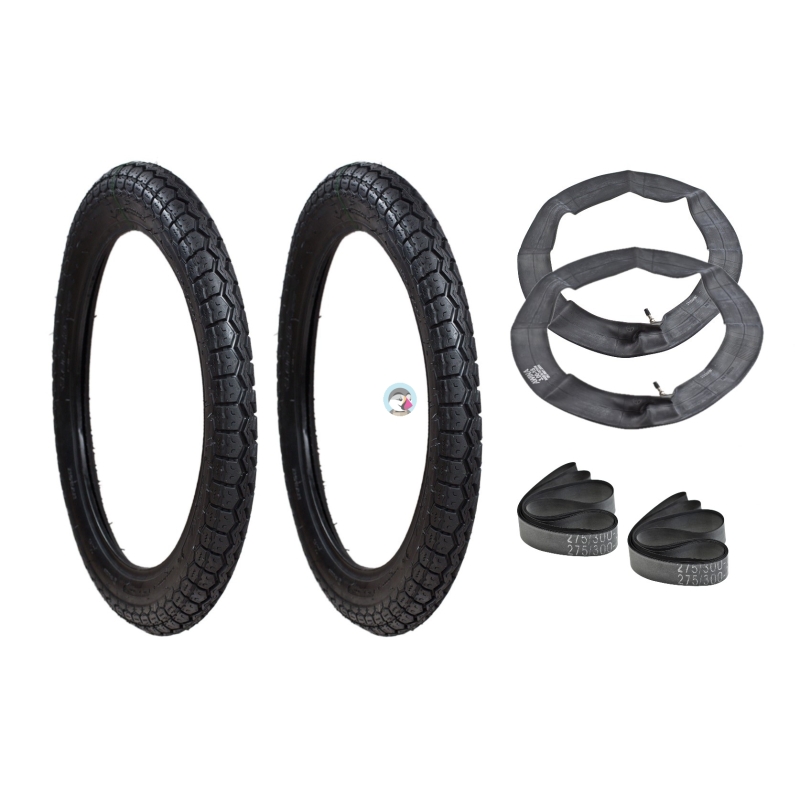 Komplet dwóch opon 3,00-18, dwóch dętek 3,00-18, i dwóch fartuchów ( osłon na szprychy ) 18 cali o szerokości 30mm. Wysokiej jakości produkt dedykowany do motocykli WSK125, SHL175, WFM125. Bieżnik zbliżony do oryginalnego wzoru.
