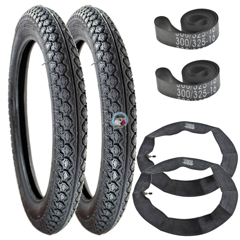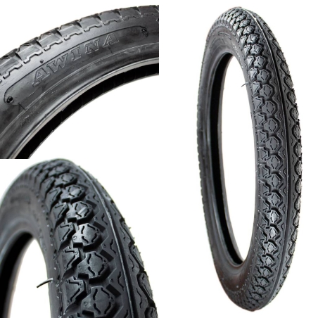 Komplet dwóch opon, dwóch dętek i dwóch opasek, o wymiarze 2,75-16, pasujacych do mototrowerów Simson S50 S51 S53, oraz Jawa 50 Mustang Skuter. Produkt wysokiej jakości Awina