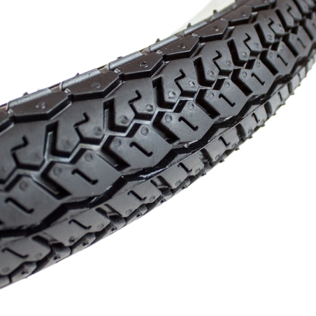 Opona o rozmiarze 2,25-17 cali, stara nomenklatura 2,25-21 cale. Pasuje do motorowerów oraz wózków mleczarskich. Doskonale podkreśli wygląd motoroweru ze względu na biały pas w okół całej opony.