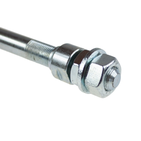 Oś koła przedniego do motorowerów Romet Ogar200 Ogar205 Kadet Motorynka Komar, na wianuszkiWymiary: długość osi: 15cm ; średnica osi: 10mmW skład produktu wchodza również nakrętki i podkładki.Wysokiej jakości produkt polski