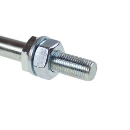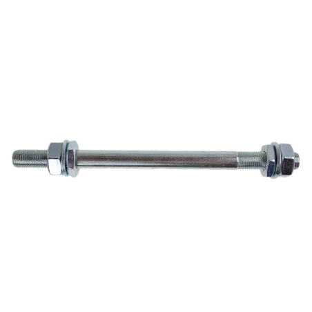 Oś koła tylnego, wykonana według wzoru oryginalnego, do motocykli WSK125 B3, WSK175Wymiary: długość użytkowa osi koła: 240mm ; średnica osi koła: 15mm ; długość całkowita osi koła: 260mm ; gwint osi: M14x1,5