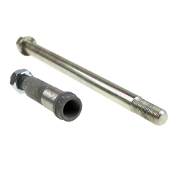 Zestaw dwóch osi koła, który zawiera łożyska oraz dwie osie koła, tuleje dystansowe, na przód oraz tył.