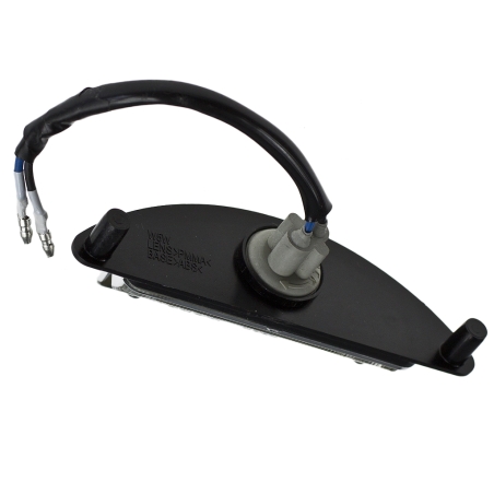 Oświetlenie tablicy rejestracyjnej, czarne, z homologacją. Szerokość od śruby do sruby: 45mm. Wysokość 20,5mm, Głębokość: 31mm. Oświetlenie przykręcane poprzez dwa blachowkręty od tyłu, prostopadle do tablicy.