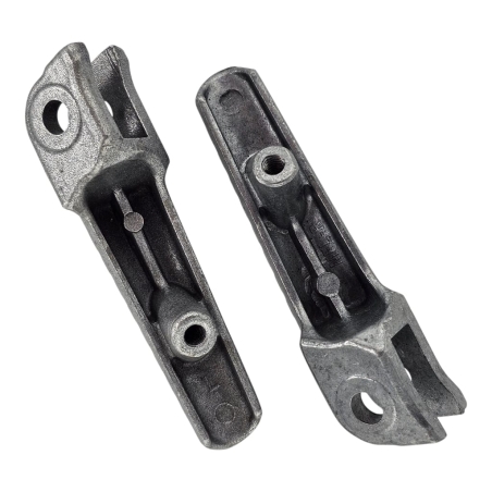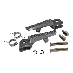 Zestaw dwóch podnóżków pasażera, z gumami, montowanych na otwór 10,6mmWymiary: długość całkowita: 130mm ; długość miejsca na nogę (gumy): 63,5mm ; średnica gumy: 28mm