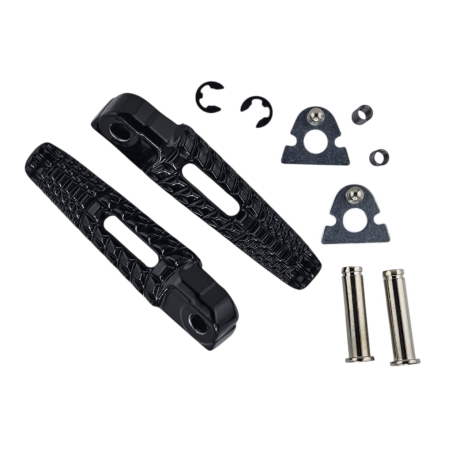 Komplet czarnych, błyszczących podnóżków pasażera, razem ze wszystkimi częściami niezbędnymi do montażu ich do setów. Zestaw podnóżków pasuje do motocykli Suzuki GSX-R600 06-14, GSX-R750 06-14, GSX-R1000 05-14, GSX1300 BK B-King 08-13 ( Dokładna lista modeli poniżej )