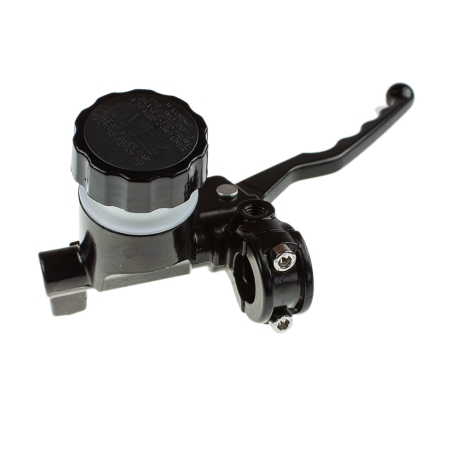 Pompa hamulcowa, lewa, do tylnego zacisku hamulcowego. Pompa jest z hamulcem ręcznym i zbiorniczkiem płynu hamulcowego, zintegorwanym z korpusem. Pasuje na kierownicę 22mm.