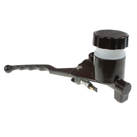 Pompa hamulcowa, prawa, do tylnego zacisku hamulcowego. Pompa jest z hamulcem ręcznym i zbiorniczkiem płynu hamulcowego, zintegorwanym z korpusem. Pasuje na kierownicę 22mm.