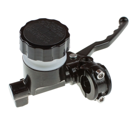 Pompa hamulcowa, ze zbiorniczkiem hamulcowym. Nie ma miejsca na lusterko.Wizjer płynu hamulcowego - od strony kierownicyMontaż na kierownicę: 22mm , strona prawaKolor pompy: czarny ; kolor dźwigni: czarny