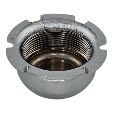 Kołpakowa nakrętka sztycy, chromowana do motorowerów Romet Komar Motorynka. Wykonana zgodnie z oryginałem. Gwint M26x1,0. W przypadku Komara Sztywniaka, z wahaczem z przodu nakrętka posiada inny rozmiar gwintu!