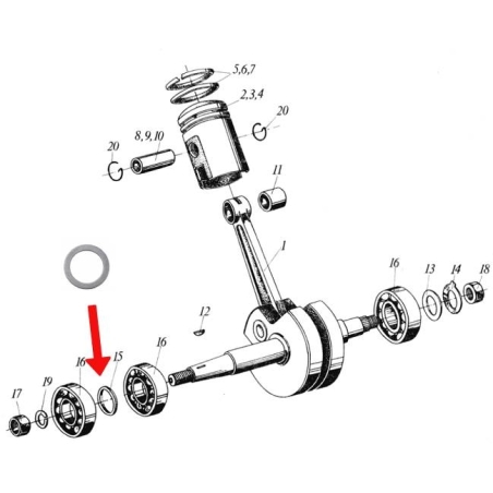 Podkładka dystansowa pomiędzy łożyskami wału korbowego, do motorowerów Romet, Komar. Pasuje do silników z okrągłym cylindrem lub kwadratowym.