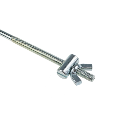 Pręt hamulca tylnego, z tulejką i nakrętką zabezpieczającą, łączący dźwignię hamulca nożnego z dźwignią rozpieracza hamulca, do motocykli WSK125, WSK175.Produkt polski. Nr OEM: M21.25.04Długość całkowita pręta: 50,5cm