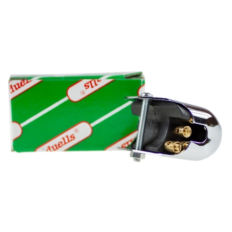 Przełącznik świateł i klaksonu, chromowany, montowany na kierownicę. Pasuje do motocykli Jawa, CZ oraz motorowerów Jawa 50 Mustang, Skuter. W obudowie przełącznika wycięto przepsut do prowadzenia kabli. Produkt najwyższej jakości Duells.