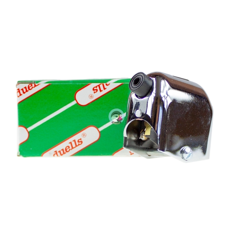 Przełącznik świateł i klaksonu, chromowany, montowany na kierownicę. Pasuje do motocykli Jawa, CZ oraz motorowerów Jawa 50 Mustang, Skuter. W obudowie przełącznika wycięto przepsut do prowadzenia kabli. Produkt najwyższej jakości Duells.