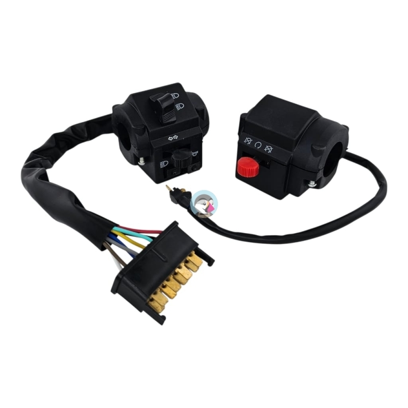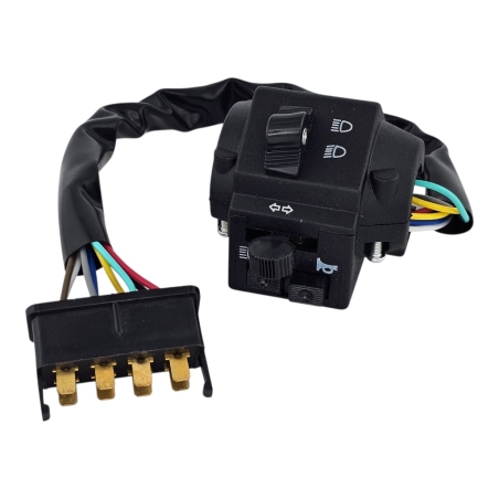 Przełącznik zespolony, lewy, do skuterów 2T 4T.Przełącznik zawiera: włącznik klaksonu, przełącznik kierunkowskazów, przełącznik świateł - drogowe- mijania. Miejsce na lusterko - gwint M8 prawy