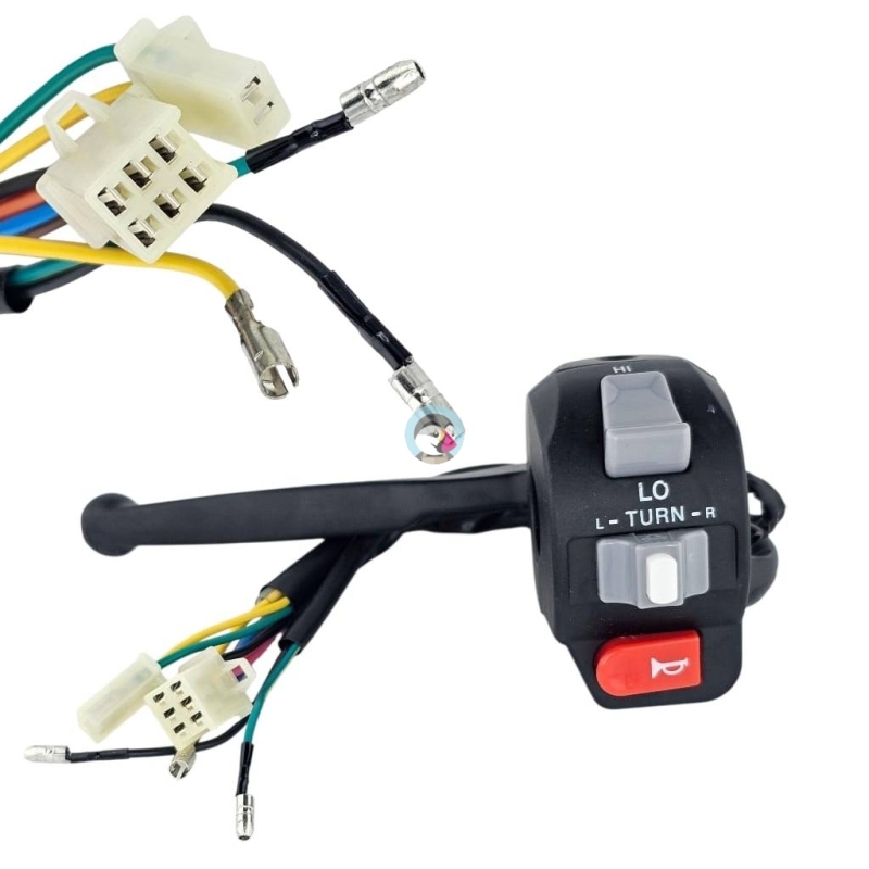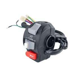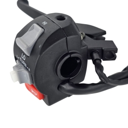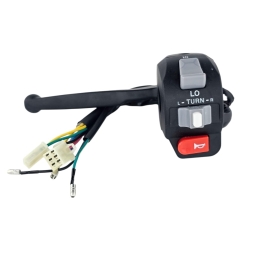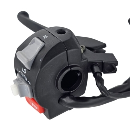 Przełącznik zespolony, lewy, z dźwignią hamulca, do skuterów 2T 4T.Przełącznik zawiera: włącznik klaksonu, przełącznik kierunkowskazów, przełącznik świateł - drogowe- mijania. Miejsce na lusterko - gwint M8 prawy
