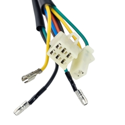 Przełącznik świateł drogowych i mijania, monotwany w owiewce na kierwonicy. Dodatkowo jest przycisk flesz.Podłączenie: 4 piny, w jednej kostce.Pasuje m.in. do skuterów produkcji chińskiej 2T i 4T 139QMB
