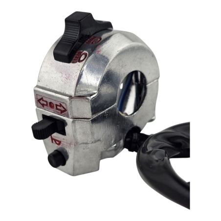 Przełącznik zespolony, lewy, do skuterów 2T 4T.Przełącznik zawiera: włącznik klaksonu, przełącznik kierunkowskazów, przełącznik świateł - drogowe- mijania. Miejsce na lusterko - gwint M8 prawy
