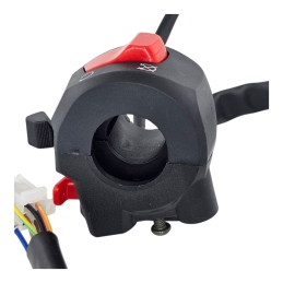 Przełącznik zespolony, lewy, z dźwignią hamulca, do skuterów 2T 4T.Przełącznik zawiera: włącznik klaksonu, przełącznik kierunkowskazów, przycisk gaszenia motoroweru. Miejsce na lusterko - gwint M8 prawy