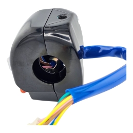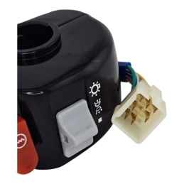 Przełącznik zespolony, lewy, do skuterów 2T 4T.Przełącznik zawiera: włącznik klaksonu, przełącznik kierunkowskazów, przełącznik świateł - drogowe- mijania. Miejsce na lusterko - gwint M8 prawy