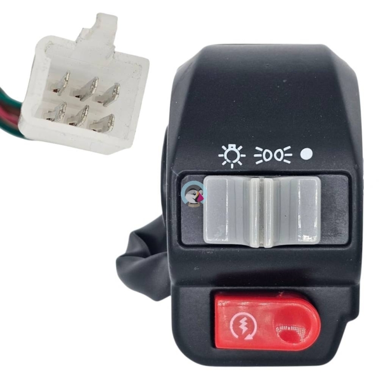 Przełącznik zespolony, lewy, do motorowerów Kingway Choper 50, Motobi Łoś, Kinroad King 50 i innych.Przełącznik zawiera: włącznik sygnału, przełącznik kierunkowskazów, przełącznik świateł drogowe - mijania