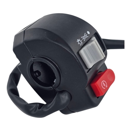 Przełącznik zawiera: korpus manetki gazu do linki zakończonej gwintem, lub wciskanej z blaszką, przełącznik świateł - wyłączone - pozycyjne - mijania, oraz włącznik rozrusznika. Miejsce na lusterko M8