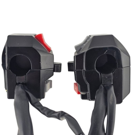 Zestaw zawiera dwa kompletne przęłączniki zepsolone z okablowaniem i kostkami do podpięcia do instalacji elektrycznej motoroweru.