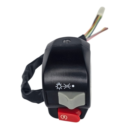 Przełącznik zespolony, lewy, do skuterów 2T 4T.Przełącznik zawiera: włącznik klaksonu, przełącznik kierunkowskazów, przełącznik świateł - drogowe- mijania. Miejsce na lusterko - gwint M8 prawy