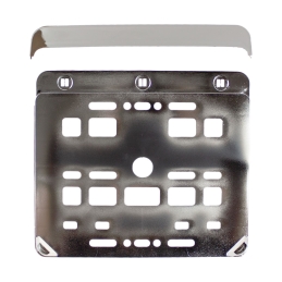 Plastikowa ramka tablicy rejestracynej motocyklowej, srebrna metalizowana, montowana do błotnika lub stelaża tablicy, z plastikiem mocującym tablice w ramce. Ramka wykonana z wysokiej jakości materiałów, odporna na czynniki atmosferyczne.