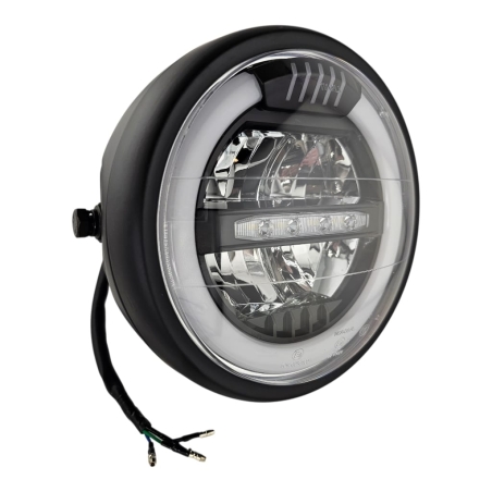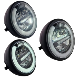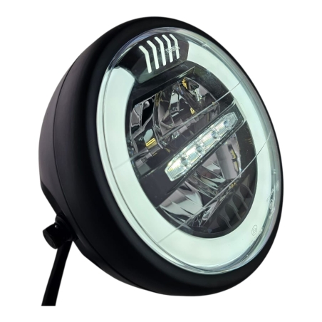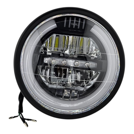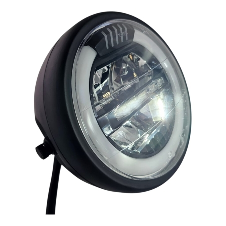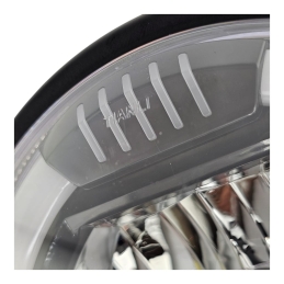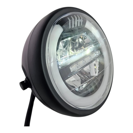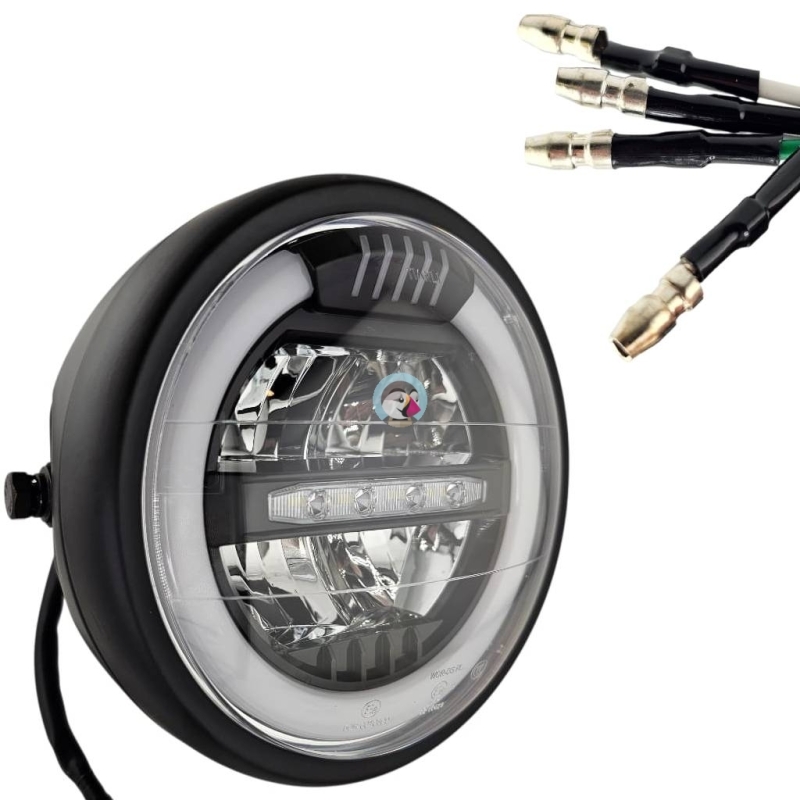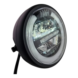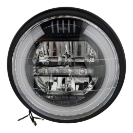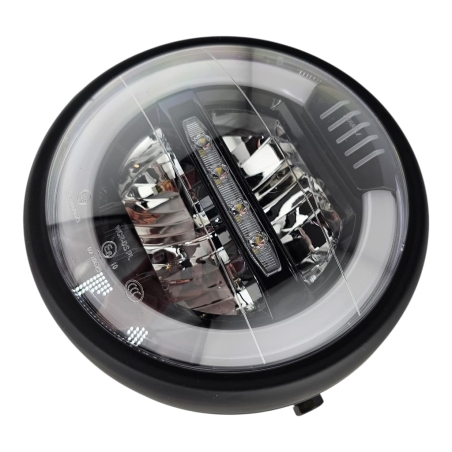 Reflektor motocyklowy, ledowy, z homologacją, do motocykli i motorowerów. Obudowa metalowa, z czarną , klasyczną ramką.