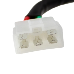 Regulator napięcia - pięć pinów. Cztery piny żeńskie w kostce, jeden osobno na konektorze rurowym męskim. Kolory przewodów: czarny, czerwony, pomarańczowy, zielony, żółty.