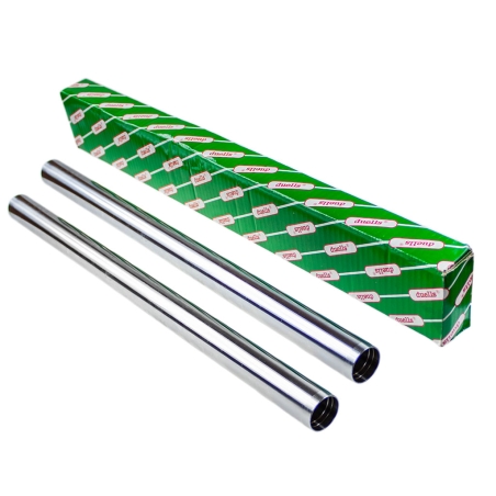 Zestaw dwóch goleni, rur amoryzatorów przednich, do motocykli MZ ETZ. Wysokiej jakości produkt marki Duells. Wykonany wedle oryginalnego wzoru.