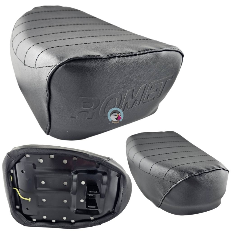 Kompletne, nowe siedzenie, z przeszywanym pokrowcem, oraz napisem ROMET z tyłu, do motorowerów Romet Komar, Romet Motorynka M2 M3 Pony.