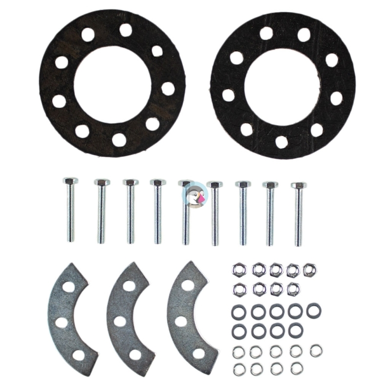 Zestaw do zamocowania tylnej zębatki silnika rowerowego, na szprychach tylnego koła w rowerze. Zestaw zawiera wszystkie elementy potrzebne do montażu zębatki.