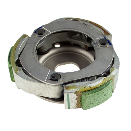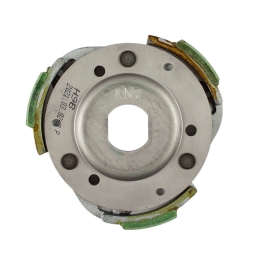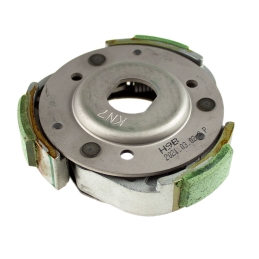 Sprzęgło odśrodkowe z dzwonem, korektorem momentu obrotowego i przeciwtalerzem korektora, do skuterów Keeway dwusuwowych, o pojemności 50cm3, 60cm3 i 70cm3.